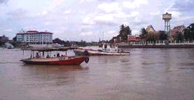 The boats between Pasak River and Chao Phraya River at south of Phet Fortress and Wat Phananchoeng at opposite
