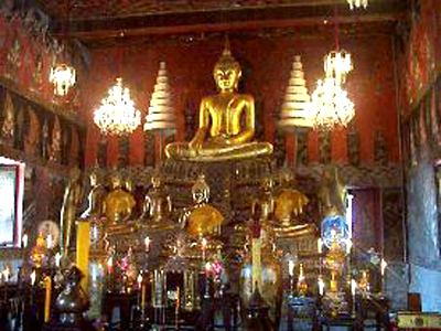 In the ordination hall at Wat Suwandararam there are mural paintings which were painted to order of many Kings.