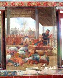 Prince Naresuan declares independance from Burma at Kreang province (A mural painting in ordination hall)