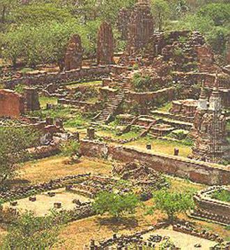 The main stupa is Pang shape made of laterite but in the later periods was resored with brick.