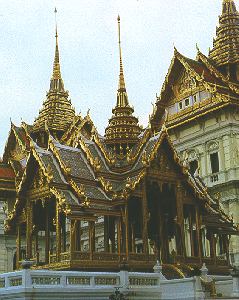 A corner of Aphonphimok Pavilion. Chakri Maha Prasat can be seen in the background