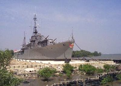 The Royal Maeklong Warship to be situated show on the bank of the Chao Phraya River