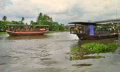 Tourist boats on the Tha Chin near Nakhon Chaisi