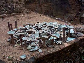 The pottery found here is usually decorated by three different painted designs on their bottom: a disc, a fish and a flower.