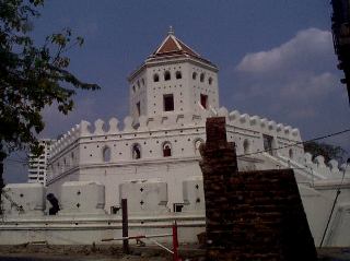 and 2.7 metres thich, broken by 16 gates and 14 forts (Phra Sumain, Yukornton, Mahaprab, Mahakan, Mootaluog, Seurtayan,