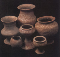Each design painted in red on a cream background is unique. Archaeologists have discovered numerous pieces of pottery from the area.