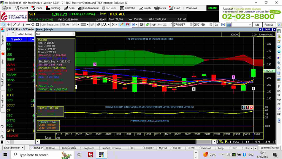 7. ใช่้แอปฯ efinStockPickUp ดูกราฟเพื่อตรวจสอบหุ้นทั้ง 4 ตัว
