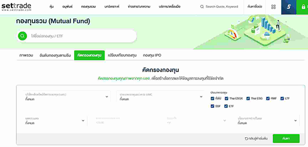 (ดูเพิ่มเติมที่ : https://www.setinvestnow.com/th/knowledge/article/156-tsi-smart-way-to-screen-mutual-funds-with-settrade-website)