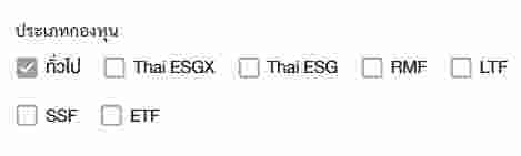 • ประเภทของกองทุนรวมที่ต้องการ 5 ประเภท ได้แก่ กองทุนทั่วไป / SSF / RMF / LTF / ETF