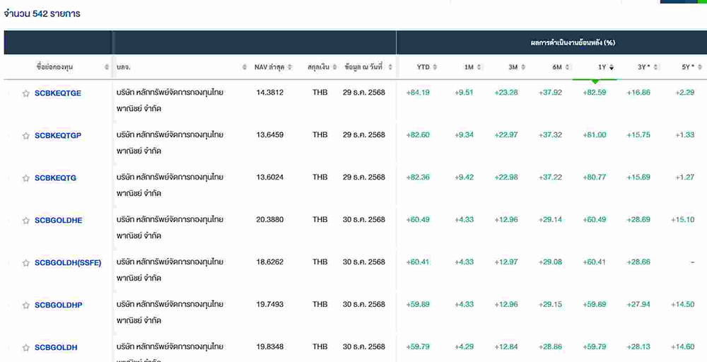 ในที่นี้เป็นตัวอย่างโดยเลือกกองทุน SCBKEQTG และ SCBGOLDH