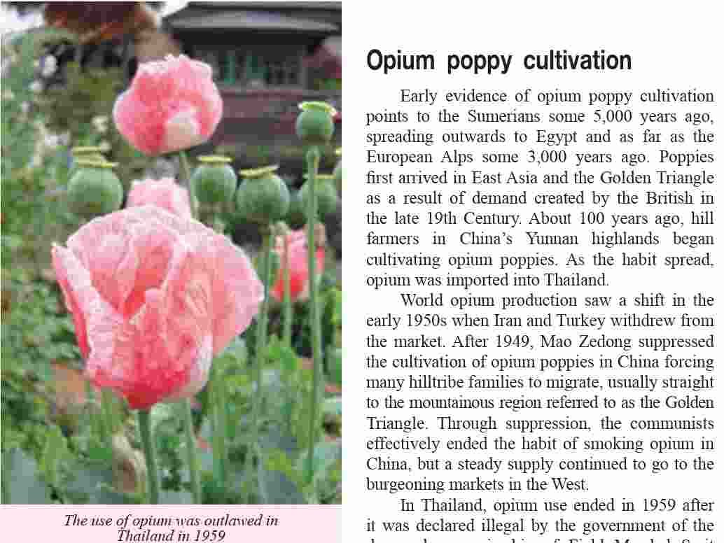 The pristine slopes were once covered with poppies amidst a profusion of wild apples, local peaches and other fruits. But it was the temperate climate that first attracted the Royal Project team to the area; they considered it eminently suited for cultivating temperate- climate fruit trees. Enthusiastically, Royal Project members acquired European text books to learn how to grow temperate-climte trees only to come up against a new problem: “Our temperate fruit textbooks couldn’t be used in Thailand because the micro-climate isn’t the same,” explained Dr Santhad Rojanasoonthon, the then chairman of the research section of the Royal Project Foundation. (Ibid., page 119)