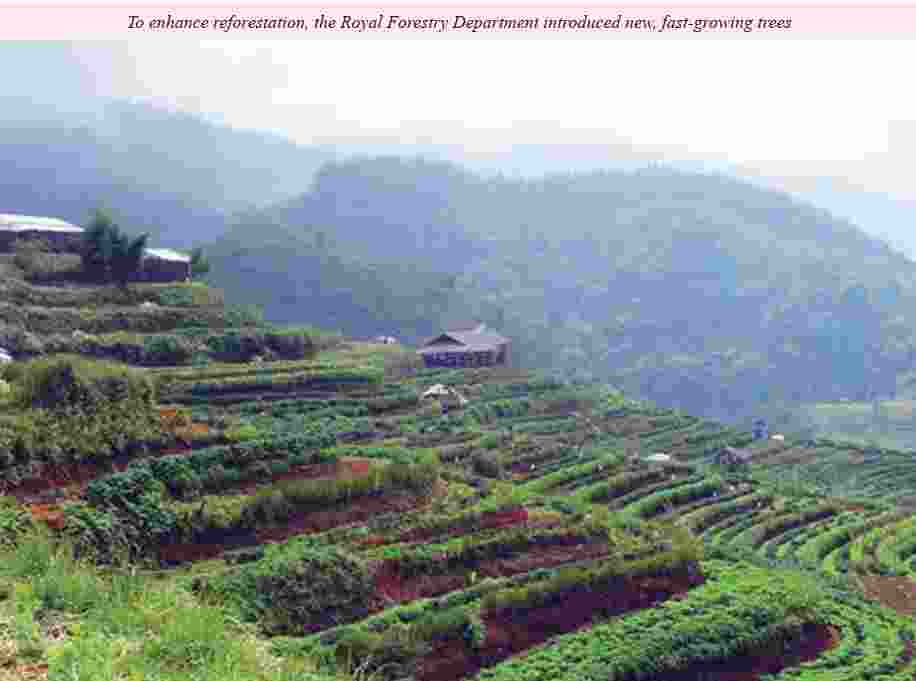 To enhance reforestation, the Royal Forestry Department introduced new, fast-growing trees.