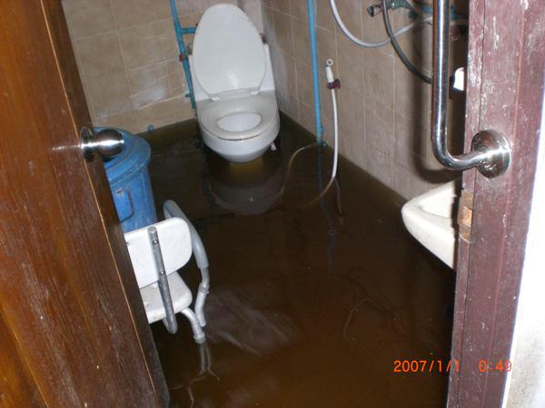 สภาพห้องน้ำชั้นล่าง (มี.ค.2555) หลังน้ำท่วมปี 2554