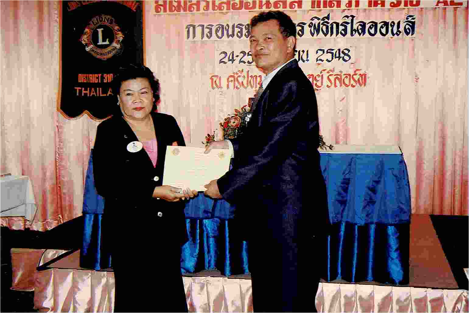 24-25 กันยายน 2548 รับประกาศนียบัตรการอบรมพิธีการ พิธีกรไลออนส์